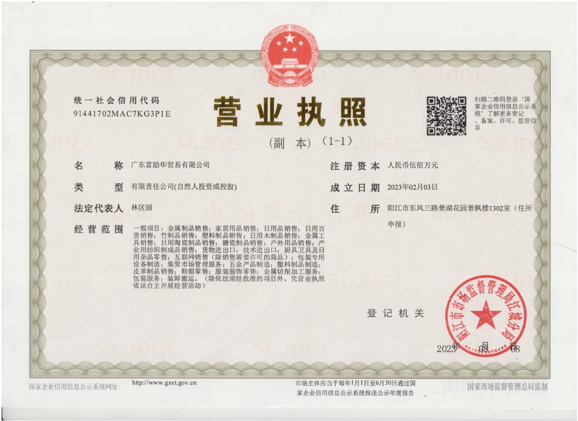 Registered address : Room 1302, Jingfeng Building, Jinghu Garden, Dongfeng Third Road Yangjiang Guangdong China